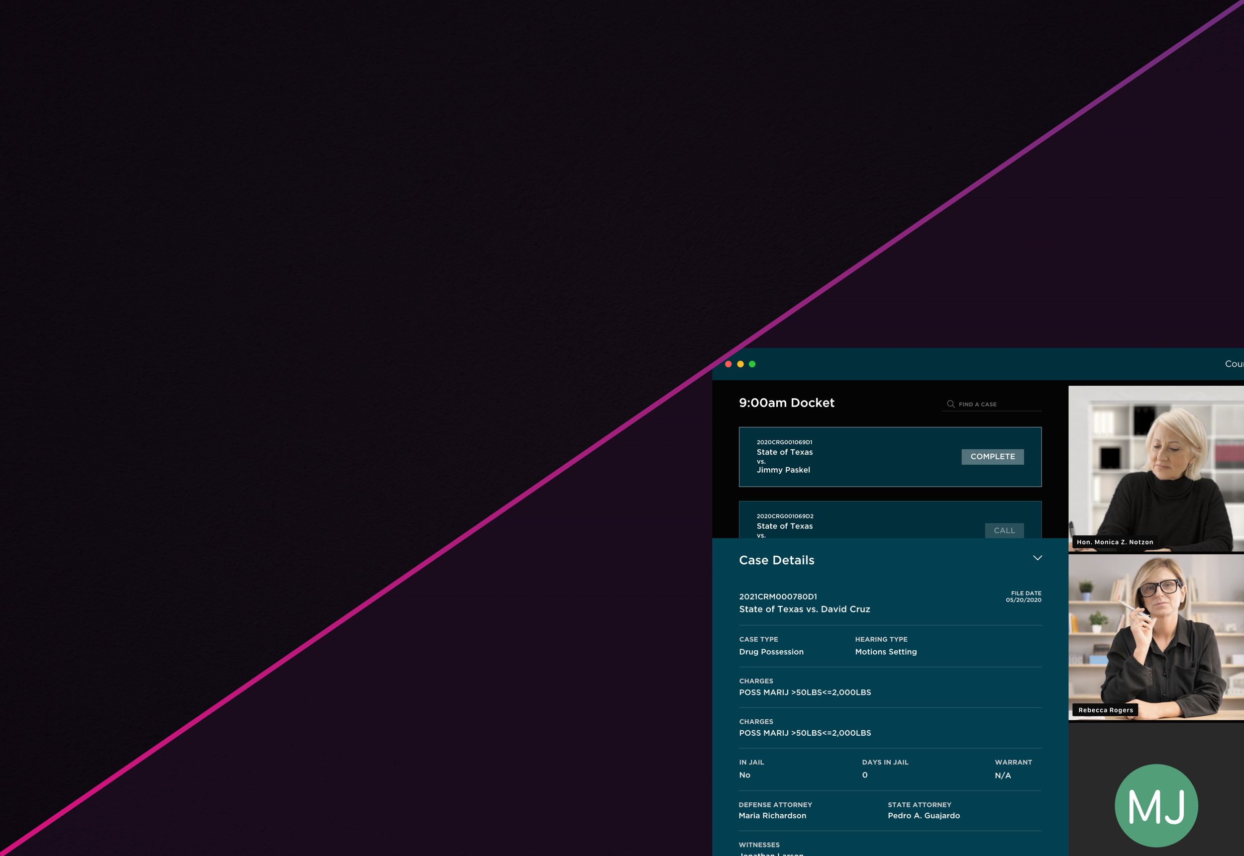 Show the docket and case information during a meeting.